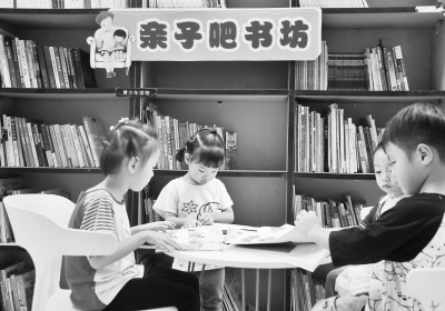 广东省的小朋友在社区“亲子吧书坊”看书。
