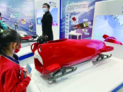 “冰雪之魅”展区是孩子们最喜欢的展区之一,这里展示了北京冬奥会3大赛区的7大比赛项目,通过多感官交互式体验,让参观者亲身体验冬奥运动项目,激发冰雪运动激情。