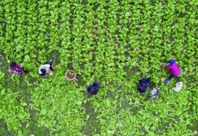 2月24日,在重庆市酉阳土家族苗族自治县涂市镇涂家寨村,村民采收青菜头。春播春种的季节,一样有收获的幸福。    新华社发(冉川/摄)