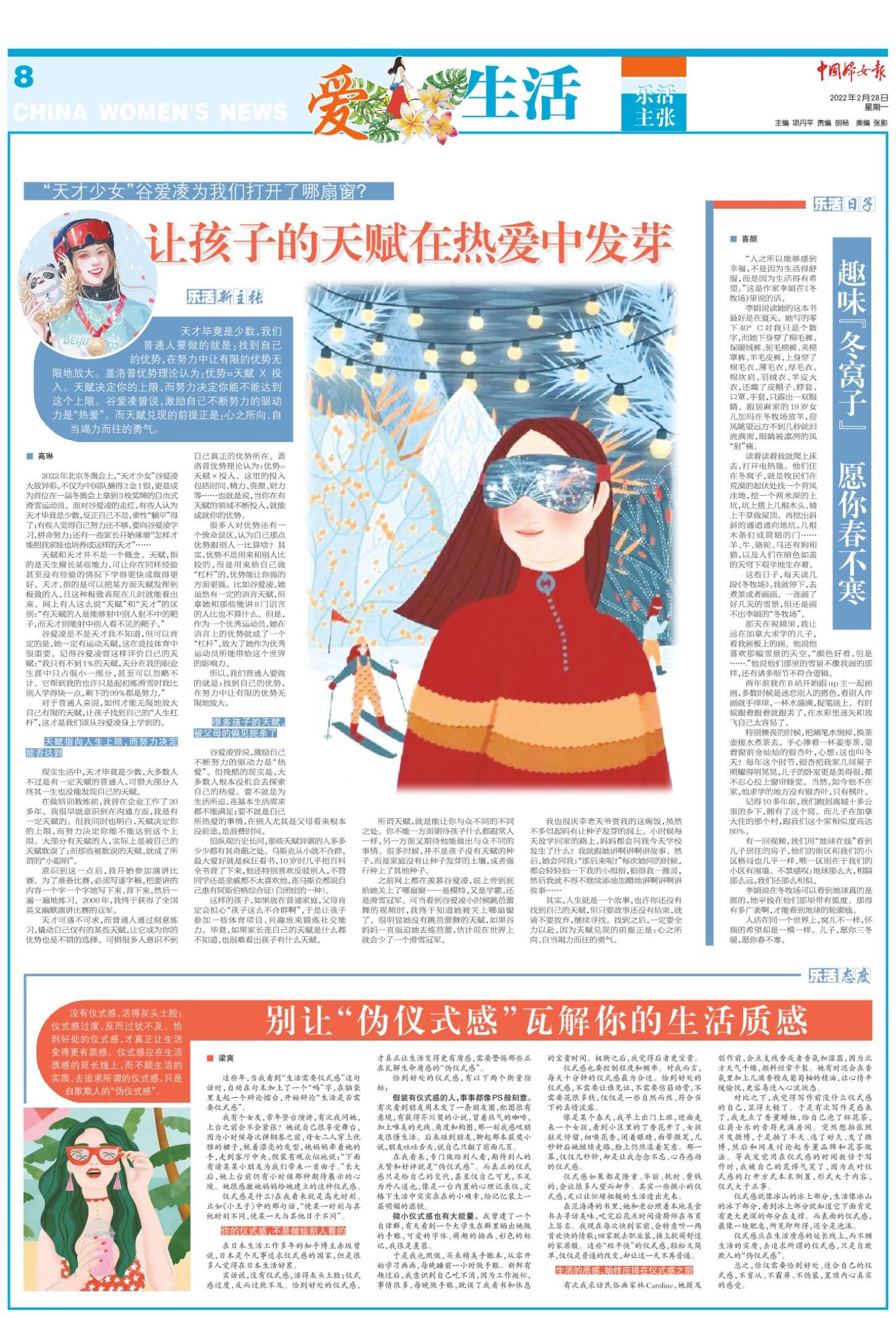 《中国妇女报》(电子版)的一切内容(包括但不限于文字、图片、PDF、图表、标志、标识、商标、版面设计、专栏目录与名称、内容分类标准以及为读者提供的任何信息)仅供中国妇女报读者阅读、学习研究使用,未经中国妇女报及/或相关权利人书面授权,任何单位及个人不得将《中国妇女报》(电子版)所登载、发布的内容用于商业性目的,包括但不限于转载、复制、发行、制作光盘、数据库、触摸展示等行为方式,或将之在非本站所属的服务器上作镜像。否则,中国妇女报将采取包括但不限于网上公示、向有关部门举报、诉讼等一切合法手段,追究侵权者的法律责任。