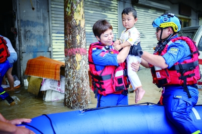 十几天后,救援队接到河南洪灾信息,连夜出动,9个小时即到达河南郑州中牟县白沙镇,立即展开救援。洪水中,这支逆流前行的蓝色力量,让老百姓“心安不少”。