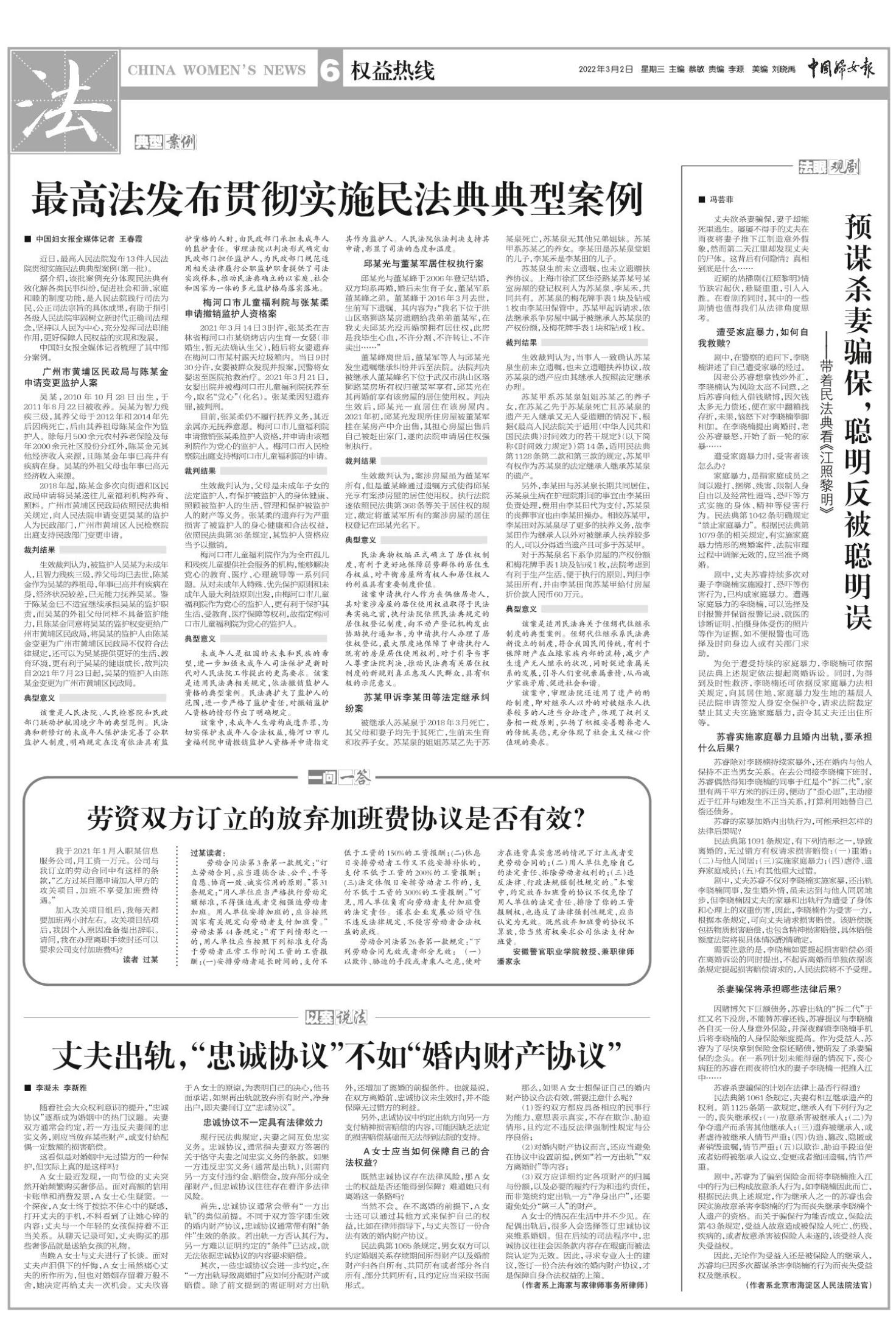 《中国妇女报》(电子版)的一切内容(包括但不限于文字、图片、PDF、图表、标志、标识、商标、版面设计、专栏目录与名称、内容分类标准以及为读者提供的任何信息)仅供中国妇女报读者阅读、学习研究使用,未经中国妇女报及/或相关权利人书面授权,任何单位及个人不得将《中国妇女报》(电子版)所登载、发布的内容用于商业性目的,包括但不限于转载、复制、发行、制作光盘、数据库、触摸展示等行为方式,或将之在非本站所属的服务器上作镜像。否则,中国妇女报将采取包括但不限于网上公示、向有关部门举报、诉讼等一切合法手段,追究侵权者的法律责任。