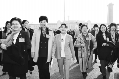三月八日,十三届全国人大五次会议在北京人民大会堂举行第二次全体会议。这是全国人大代表走向会场。    新华社记者 金良快/摄