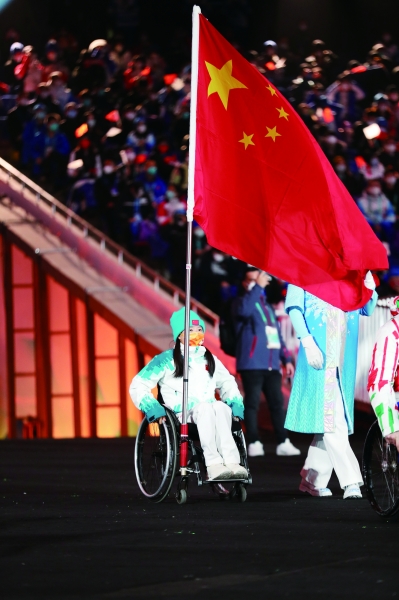 中国代表团旗手杨洪琼在闭幕式上入场。