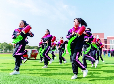 3月15日,江苏省海安市李堡镇中心小学乡村“复兴少年宫”的孩子们在练习省级非遗“海安花鼓”。“复兴少年宫”根据少年儿童的身心发展特点,将省级非遗项目“海安花鼓”形成校本课程,纳入课后延时服务项目,助力“双减”政策,让孩子们在陶冶艺术情操的同时传承优秀非遗文化。