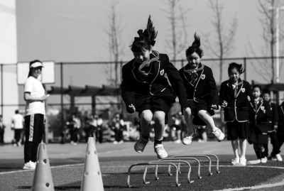 3月17日,在四川省眉山市视高街道视高小学,学生们在操场上进行足球训练。