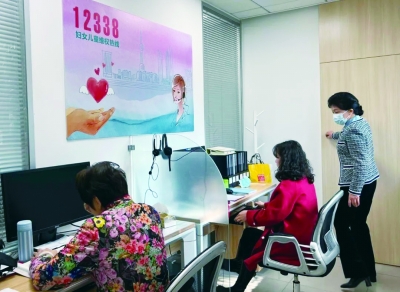 上海市妇联12338热线工作人员办公现场。