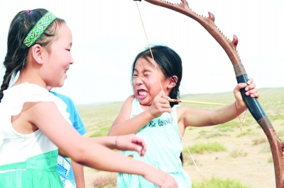 这两张照片分别来自我的一个短期拍摄项目和一个长期拍摄项目。2014年,应新华社高级编辑陈小波和北京电影学院摄影学院宋靖院长的邀请,我参与了一个“影观达茂”的摄影项目,拍摄内蒙古自治区达茂旗蒙古族孩子的生活。据悉,这些在城市里上学的孩子只有在假期才能回到草原的家,为了传承民族传统文化,他们会利用假期和老一辈学习蒙古族传统的骑马、射箭、摔跤技艺。孩子们很努力地学习,照片中一位小姑娘使出吃奶的力气拉动弓弦的样子着实可爱。在薪火相传中,孩子们不畏艰难,模仿、学习着这些传统民族技艺,度过了一个有意义的暑期。