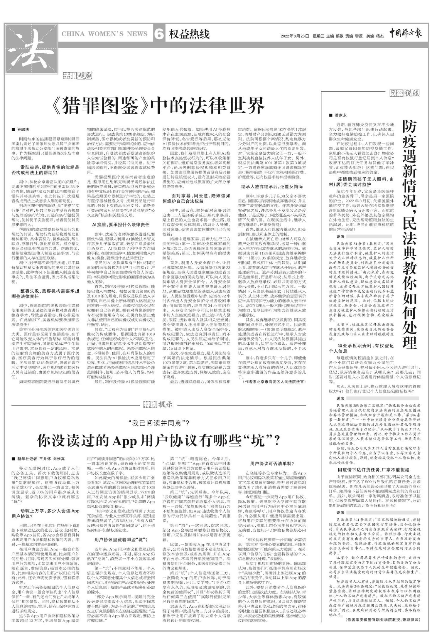 《中国妇女报》(电子版)的一切内容(包括但不限于文字、图片、PDF、图表、标志、标识、商标、版面设计、专栏目录与名称、内容分类标准以及为读者提供的任何信息)仅供中国妇女报读者阅读、学习研究使用,未经中国妇女报及/或相关权利人书面授权,任何单位及个人不得将《中国妇女报》(电子版)所登载、发布的内容用于商业性目的,包括但不限于转载、复制、发行、制作光盘、数据库、触摸展示等行为方式,或将之在非本站所属的服务器上作镜像。否则,中国妇女报将采取包括但不限于网上公示、向有关部门举报、诉讼等一切合法手段,追究侵权者的法律责任。