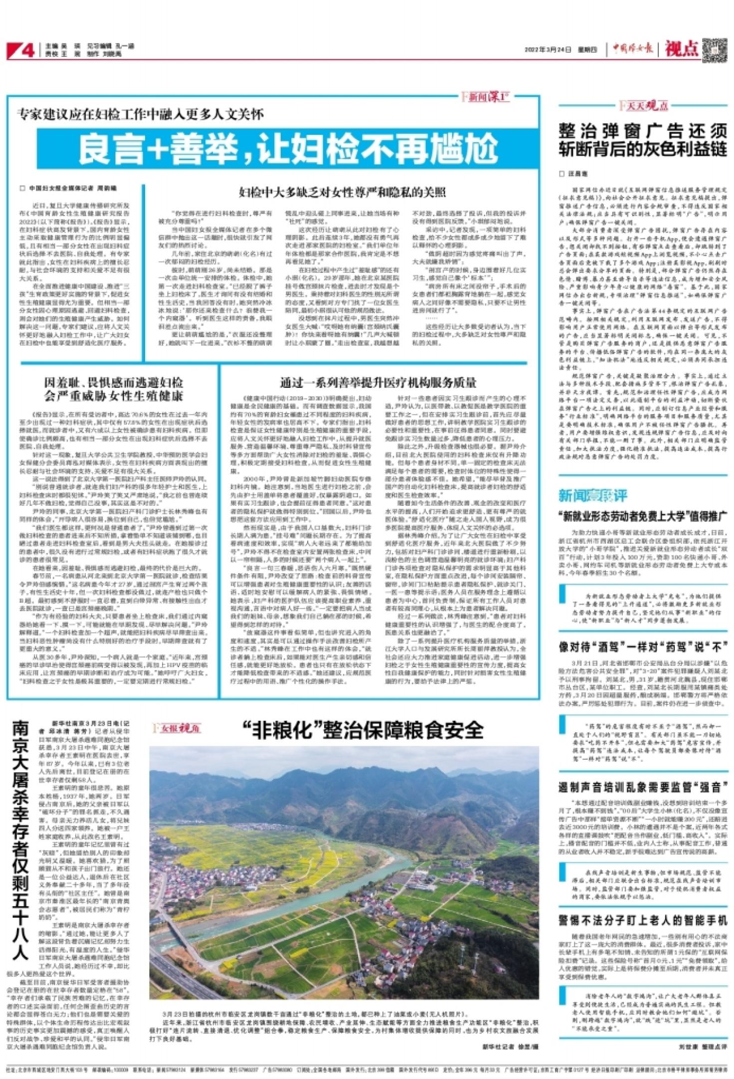 《中国妇女报》(电子版)的一切内容(包括但不限于文字、图片、PDF、图表、标志、标识、商标、版面设计、专栏目录与名称、内容分类标准以及为读者提供的任何信息)仅供中国妇女报读者阅读、学习研究使用,未经中国妇女报及/或相关权利人书面授权,任何单位及个人不得将《中国妇女报》(电子版)所登载、发布的内容用于商业性目的,包括但不限于转载、复制、发行、制作光盘、数据库、触摸展示等行为方式,或将之在非本站所属的服务器上作镜像。否则,中国妇女报将采取包括但不限于网上公示、向有关部门举报、诉讼等一切合法手段,追究侵权者的法律责任。