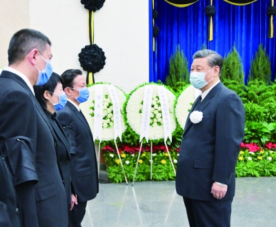 上午9时40分许,习近平、栗战书、汪洋等,在哀乐声中缓步来到何鲁丽同志的遗体前肃立默哀,向何鲁丽同志的遗体三鞠躬,并向何鲁丽同志亲属表示深切慰问。