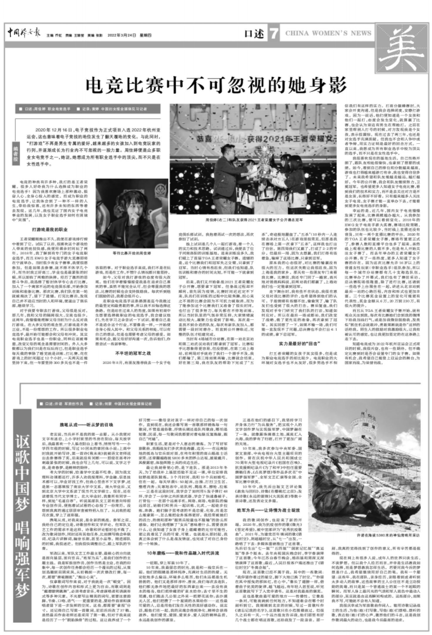 ■ 口述:许诺 军旅创作员 ■ 记录:何蒙 中国妇女报全媒体记者