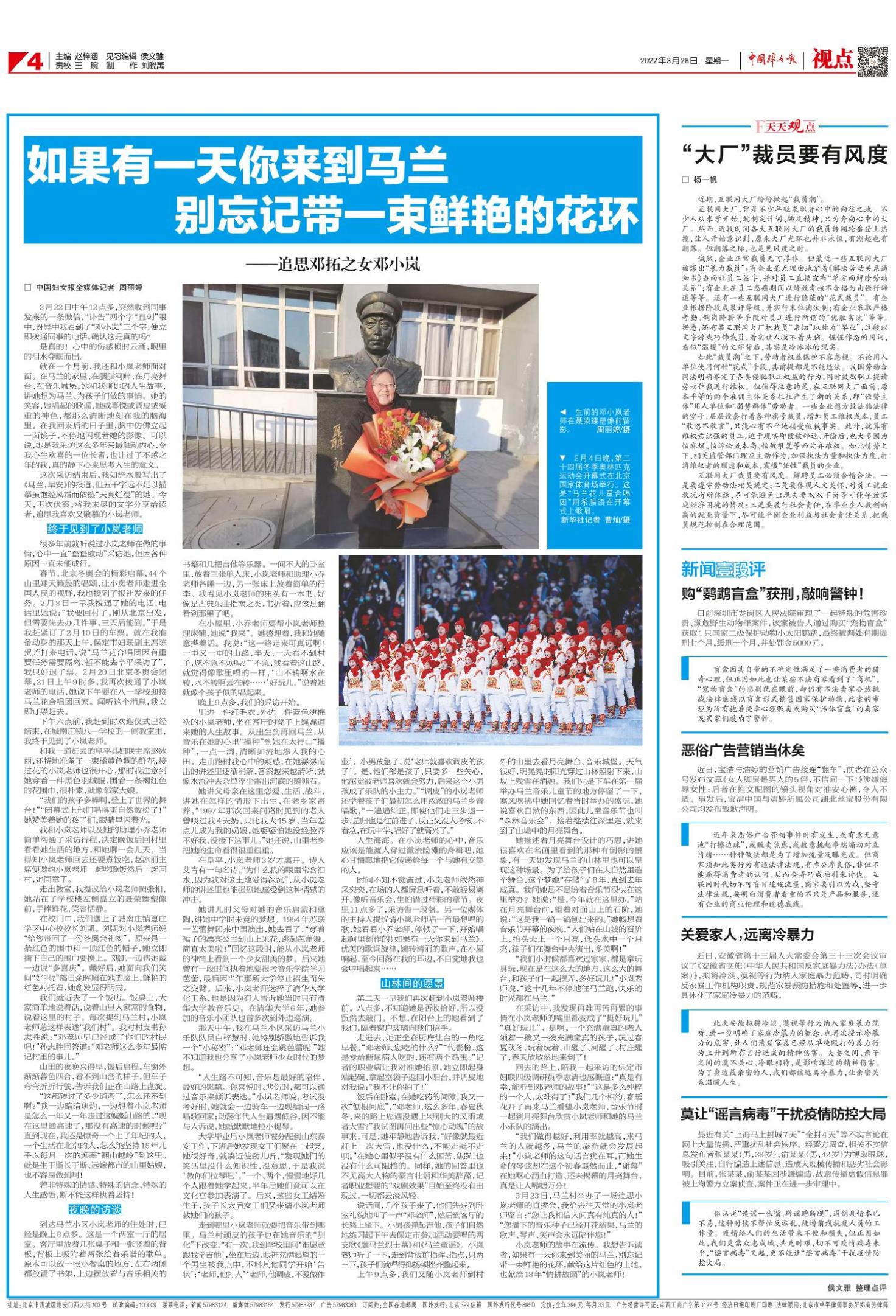 《中国妇女报》(电子版)的一切内容(包括但不限于文字、图片、PDF、图表、标志、标识、商标、版面设计、专栏目录与名称、内容分类标准以及为读者提供的任何信息)仅供中国妇女报读者阅读、学习研究使用,未经中国妇女报及/或相关权利人书面授权,任何单位及个人不得将《中国妇女报》(电子版)所登载、发布的内容用于商业性目的,包括但不限于转载、复制、发行、制作光盘、数据库、触摸展示等行为方式,或将之在非本站所属的服务器上作镜像。否则,中国妇女报将采取包括但不限于网上公示、向有关部门举报、诉讼等一切合法手段,追究侵权者的法律责任。