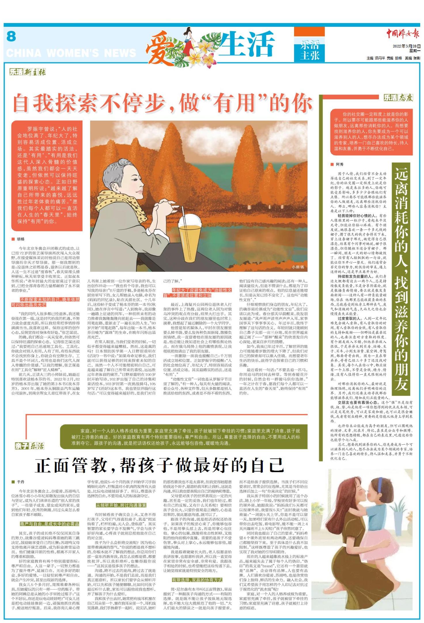 罗振宇曾说:“人的社会地位高了、年纪大了,特别容易活成位置、活成立场。其实最踏实的活法,还是‘有用’。”有用是我们这代人深入骨髓的价值感,虽然我们都会一天天变老,但依然可以保持旺盛的探索心态。正如日野原重明所说:“越来越了解自己所带来的喜悦,远远胜过年老体衰的痛苦。”愿我们每个人都可以一直活在人生的“春天里”,始终保持“有用”的你。