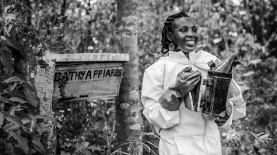 凯瑟琳·姆坎达维尔决定,她不仅要在保护和维护环境方面发挥领导作用,而且应该以此为生,以激励同龄人也这样做。她首先在位于山脚下的自家土地上种植了2500棵松树,然后增加了每周生产20升蜂蜜的蜂箱,和一个被野花和香蕉作物包围的鱼塘。从自给自足的农业多样化到建成一套规模较小、可持续发展的良性循环系统,目前她的投资正在获得回报。凯瑟琳·姆坎达维尔用卖蜂蜜赚到的钱支付了五名员工的工资、两个兄弟姐妹的学费以及年迈父母的赡养费。