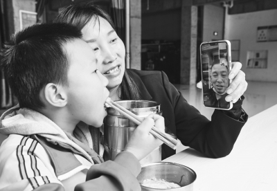 3月30日,上小学的儿子吃午饭时,与在外地打工的父亲视频通话。 在巴山深处的陕西省安康市岚皋县民主镇明珠社区,44岁的杨玲28年如一日,悉心照顾双目失明的父亲和瘫痪在床的哥哥,坚强地守护着这个家。 1994年,杨玲的哥哥杨大福在外务工时不幸遭遇事故,导致下半身瘫痪。母亲整日以泪洗面,卧病一年后去世,父亲也因眼疾双目失明。生活的重担全部压在杨玲身上。邻村小伙王学宏走进他们的家庭后,为了生计选择外出打工挣钱,杨玲则在家里操持家务、照顾家人。28年的风风雨雨,杨玲精心呵护着父亲和哥哥,哺育着年幼的孩子。稍有空闲,还从社区工厂领回原料,在家里加工产品增加收入。在岚皋县帮扶干部和杨玲的共同努力下,2019年,杨玲一家实现脱贫摘帽。 “明天更好”是杨玲的微信号,“我每天眼一睁,都有做不完的事。但只要看到家人快快乐乐,我就心满意足了。最艰苦的日子都过来了,我相信今后会越来越好!”新华社记者 陶明/摄
