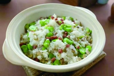 的确,下饭菜一道连着一道,冬笋菌菇肉丁的小炒,冬笋切大块,但笋上划了丝,生脆又入味。蚕豆咸肉饭,春天的蚕豆真是每天吃都不厌。还有炒年糕海虾,油爆加酱油的版本,更加甜鲜。主食三连弹,最后还有一碗香香的桂花藕粉粥。但对我来说,嗦螺蛳,才是真正的饭后小点心。