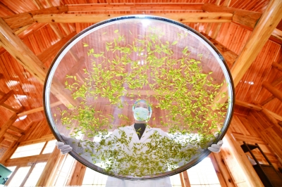 4月2日,当地妇女在贵州省黔东南苗族侗族自治州黄平县浪洞镇永康村云雾山“黄金芽”种植基地加工新茶。近年来,黄平县浪洞镇永康村立足资源优势,做好“茶叶经济”文章,采取“党支部+合作社+农户”的发展模式,种植“黄金芽”和油茶850余亩,让荒坡荒山变成“金山银山”,促进村民增收致富。中国妇女报全媒体记者高峰/龚循娟 文/图