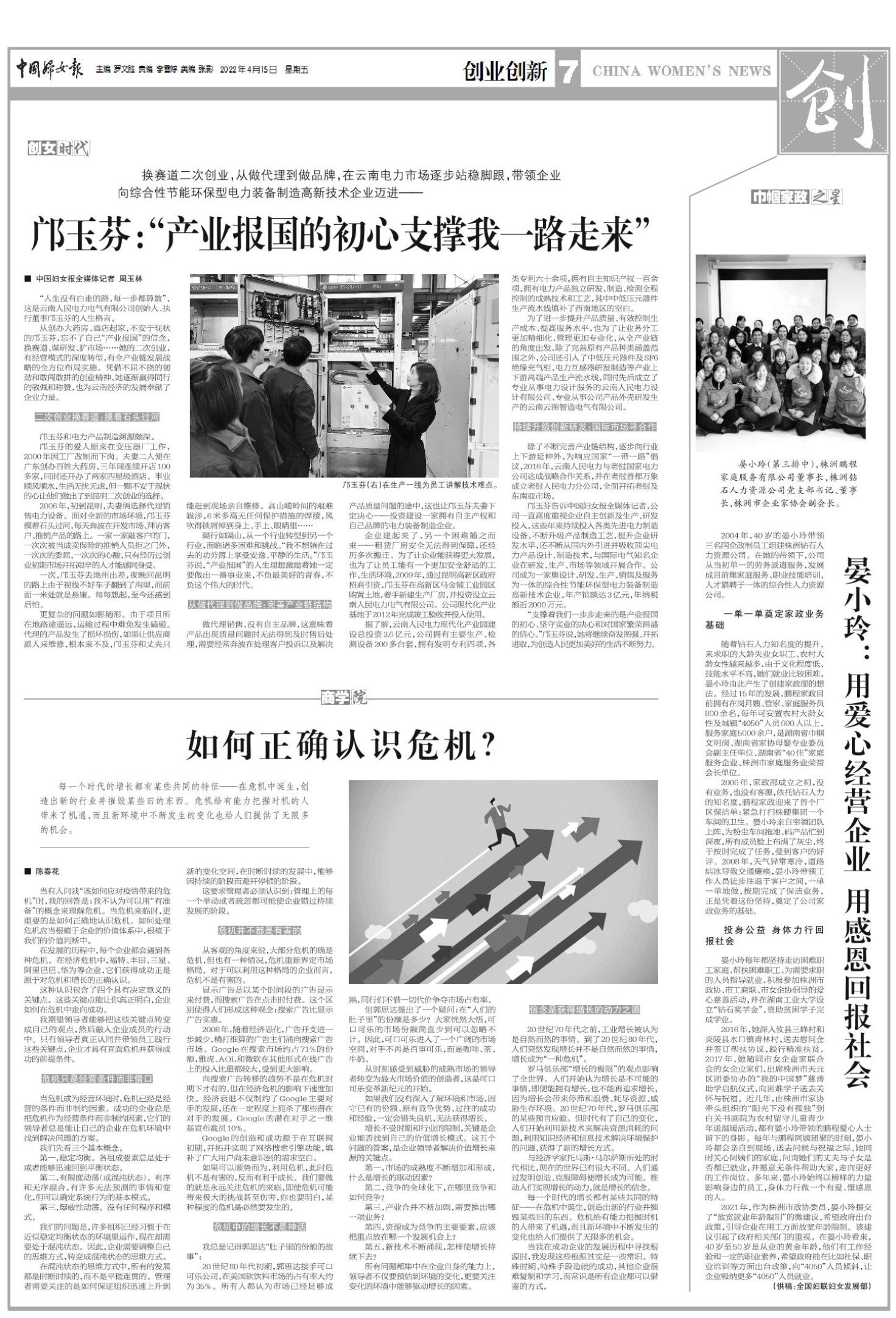 邝玉芬告诉中国妇女报全媒体记者,公司一直高度重视企业自主创新及生产、研发投入,这些年来持续投入各类先进电力制造设备,不断升级产品制造工艺,提升企业研发水平,还不断从国内外引进并吸收顶尖电力产品设计、制造技术,与国际电气知名企业在研发、生产、市场等领域开展合作。公司成为一家集设计、研发、生产、销售及服务为一体的综合性节能环保型电力装备制造高新技术企业,年产销额达3亿元,年纳税额近2000万元。