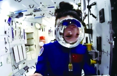 于是,我们看到“天宫课堂”呈现了一些微重力环境下,与物体运动、液体浮力、液体表面张力等有关的实验,被“潜水的乒乓球”、倒影人像的“超大水球”、附着于水膜上的“中国结”等新奇的太空现象深深吸引。比如,“泡腾片加入水球”实验最初创意来自一名孩子提出的问题,有关方面在筛选时担心气体从水球内冒出可能导致液体溅到舱内器件上,就没将其纳入进去。不过,王亚平觉得此实验很有创意并测试成功了,就在课堂上演示出来,让人耳目一新。