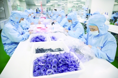 4月25日,在浙江省杭州市桐庐经济开发区一家医疗器械生产企业,工人在组装、检测医疗器械。    今年以来,各地坚持“动态清零”总方针不动摇,积极出台多项政策举措,稳定市场主体,助力有序生产。    新华社发(徐军勇/摄)