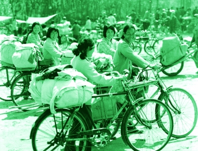 《大嫂经商》是1985年我在山东省莒南县坪上镇采访时途经集市拍摄的。当时,党和国家把工作重心转移到经济建设上来,农村实施家庭联产承包责任制率先前行,不仅调动了广大农民的积极性,也引发了其他领域的改革。多种经济成分得以迅速发展,城乡农贸市场日渐活跃繁荣。就连当时经济基础很薄弱的山区县莒南,农贸市场也出现了火爆场景:人声鼎沸,叫卖声不绝于耳。更令人惊讶的是,举目望去,经商者大多是当地的农村家庭妇女。