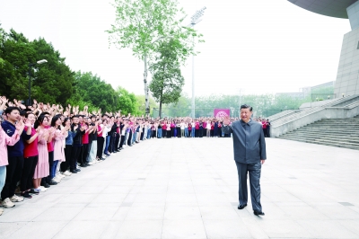 习近平离开学校时,道路两旁站满了师生,大家激动地向总书记问好,齐声高呼“青春向党、不负人民”、“复兴栋梁、强国先锋”,习近平向大家挥手致意,掌声、欢呼声在校园内久久回荡。