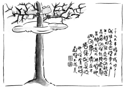 王蒙的《中国天机》《读书解人》等(“王道”书系8本)出版时,又邀请我为整套书画插图,他还曾为我的漫画题字“哲趣翩跹”。王老师一次次的提携和关照,都令我怀感恩之心、念相助之人、感相识之缘、承关爱之情。