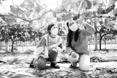 2022年5月9日,江苏省如皋市东陈镇,党员志愿者和技术人员来到葡萄种植基地,向果农了解葡萄生长情况,并进行技术指导。连日来,当地组织青年党员助农志愿服务队来到葡萄种植基地,帮助果农进行葡萄管护工作,为增产增收打好基础。中新社发 徐慧/摄