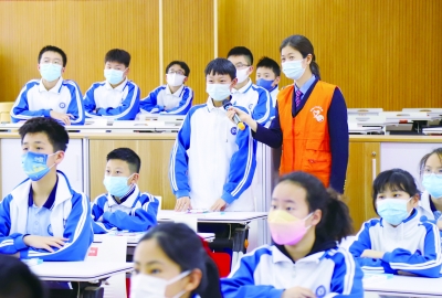 5月9日,铁路徐州站的志愿者与徐州市第三十五中学的同学进行铁路安全知识互动问答。    当日,铁路徐州站的青年志愿者来到徐州市第三十五中学进行铁路安全教育宣传进校园活动。志愿者通过铁路安全法律法规讲堂、发放铁路安全知识读本、互动游戏、赠送安全常识文创产品等方式,给青少年普及铁路安全知识。    新华社发
