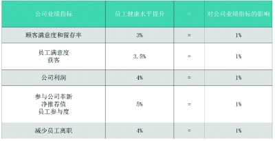 调研发现,通过提升员工健康水平能够显著改善公司的各项关键经营指标,包括企业的客户满意度、客户留存率、员工敬业度、员工忠诚度、公司利润率等。
