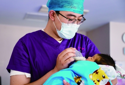 婴啼声起,新生命呱呱坠地。在云南昆明医科大学第一附属医院,一个身高近两米的男护士在儿科监护室中忙碌,他就是被同事称为“超级奶爸”的员育国。 今年26岁的员育国主要负责新生婴儿的治疗护理工作。“我刚工作时手忙脚乱,十多分钟才能换完一片尿片,现在相同的时间已能为四五个婴儿更换完,并做好相关的检查备案工作。”员育国说。 除了基础治疗,作为儿科护士,员育国还要完成为小宝宝称体重、护理、喂奶、做抚触促进消化等工作。“每3小时喂一次奶、换一次尿片,虽然辛苦,但心里会觉得甜甜的。”员育国说,“工作中经常听到婴儿的第一声啼哭,婴儿的啼哭是一种召唤,我们愿意做孩子重要的守护者。”