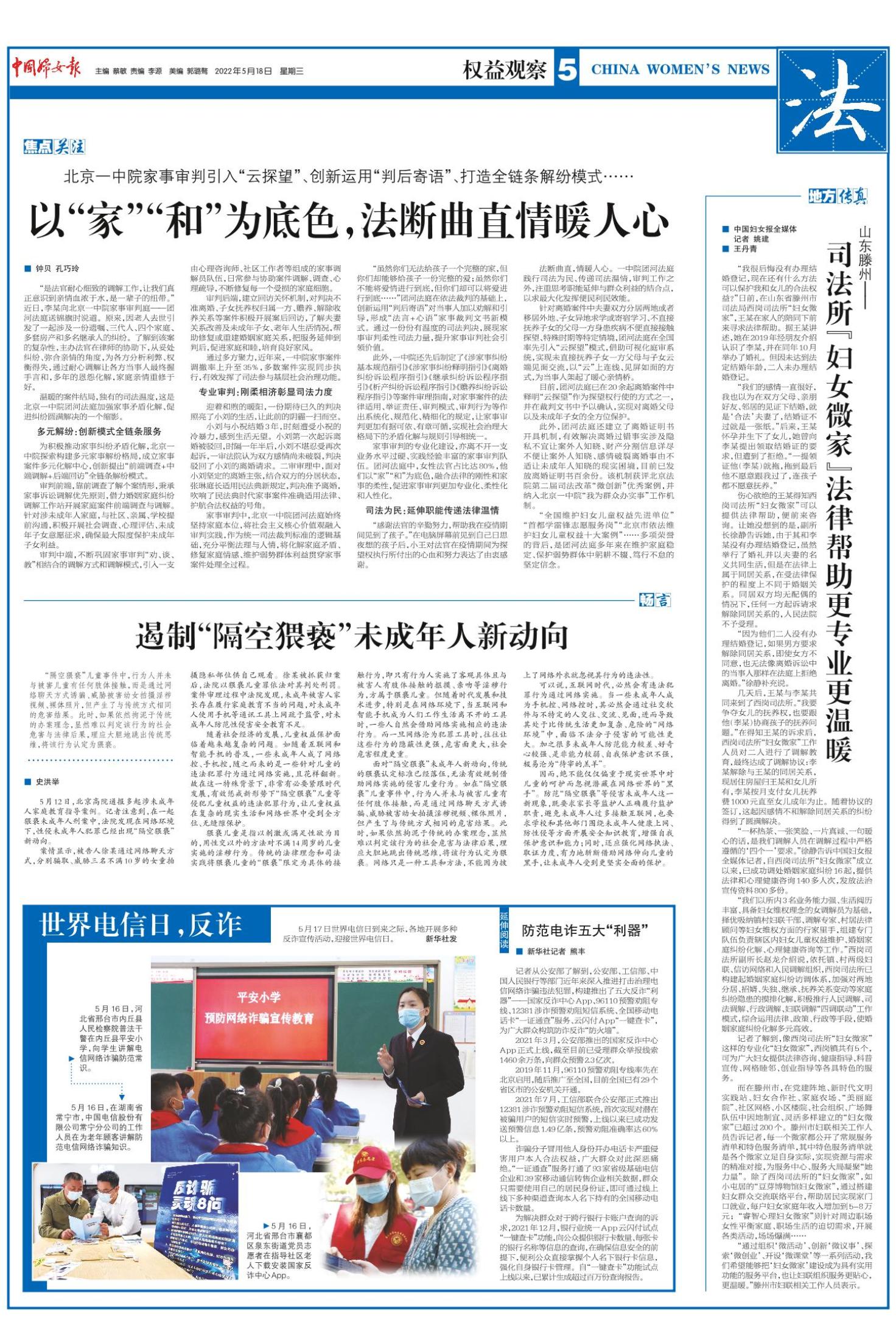 《中国妇女报》(电子版)的一切内容(包括但不限于文字、图片、PDF、图表、标志、标识、商标、版面设计、专栏目录与名称、内容分类标准以及为读者提供的任何信息)仅供中国妇女报读者阅读、学习研究使用,未经中国妇女报及/或相关权利人书面授权,任何单位及个人不得将《中国妇女报》(电子版)所登载、发布的内容用于商业性目的,包括但不限于转载、复制、发行、制作光盘、数据库、触摸展示等行为方式,或将之在非本站所属的服务器上作镜像。否则,中国妇女报将采取包括但不限于网上公示、向有关部门举报、诉讼等一切合法手段,追究侵权者的法律责任。