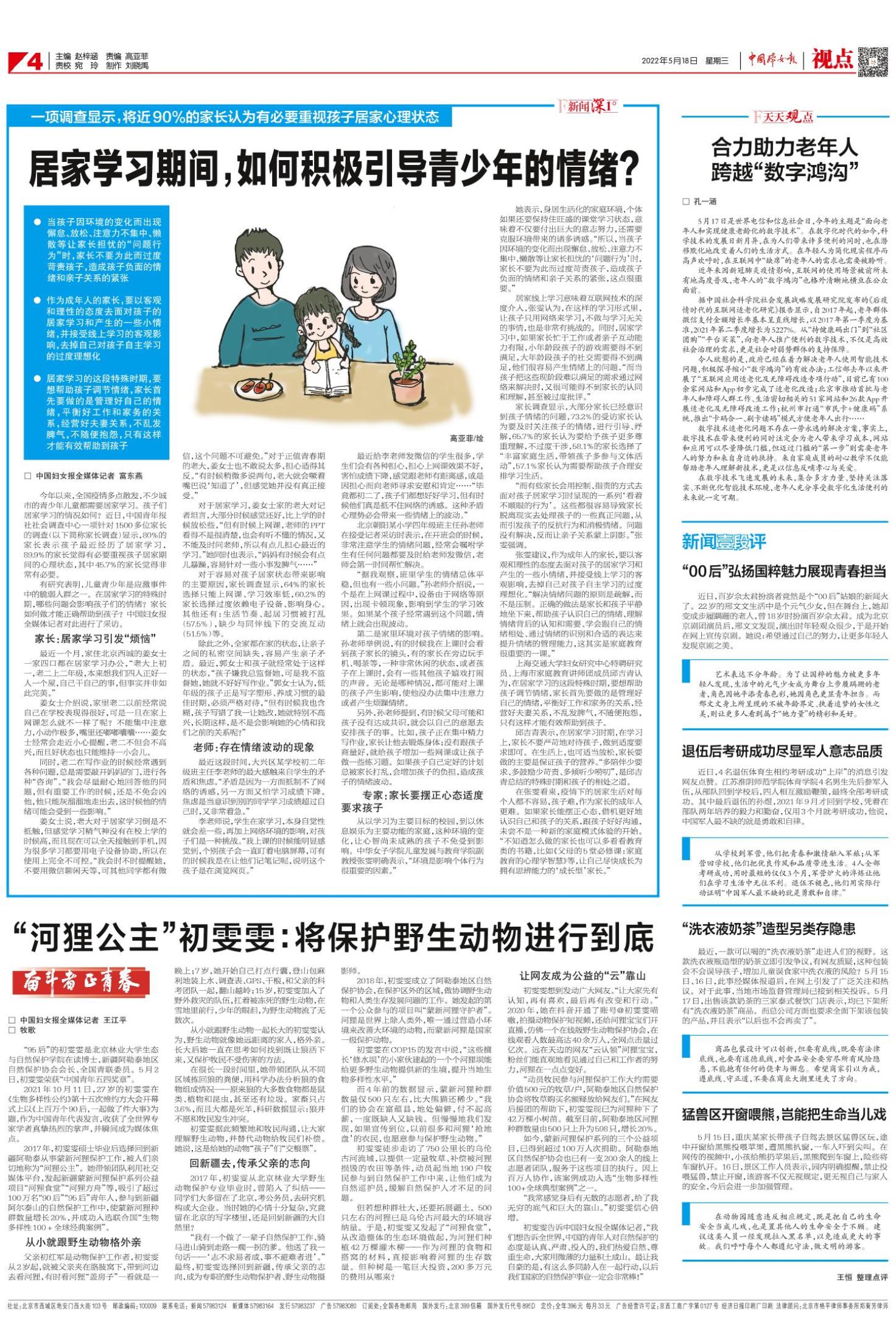 邱吉青表示,在居家学习时期,在学习上,家长不要严苛地对待孩子,做到适度要求即可。在生活上,也可适当放松,家长要做的主要是保证孩子的营养。“多陪伴少要求、多鼓励少苛责、多倾听少唠叨”,是邱吉青总结的特殊时期和孩子的相处之道。
