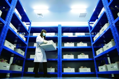 ▲ 5月19日,工作人员在黑龙江寒地作物种质资源库内搬运种子。