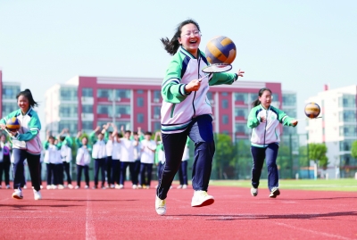 5月22日,青岛通济实验学校高三学生在进行“托起地球”比赛。高考临近,位于山东省青岛市即墨区的青岛通济实验学校在开展复习备考的同时,通过组织高三学生开展丰富多彩的集体减压活动,帮助他们释放身心压力,以轻松、乐观、自信的心态迎接高考。