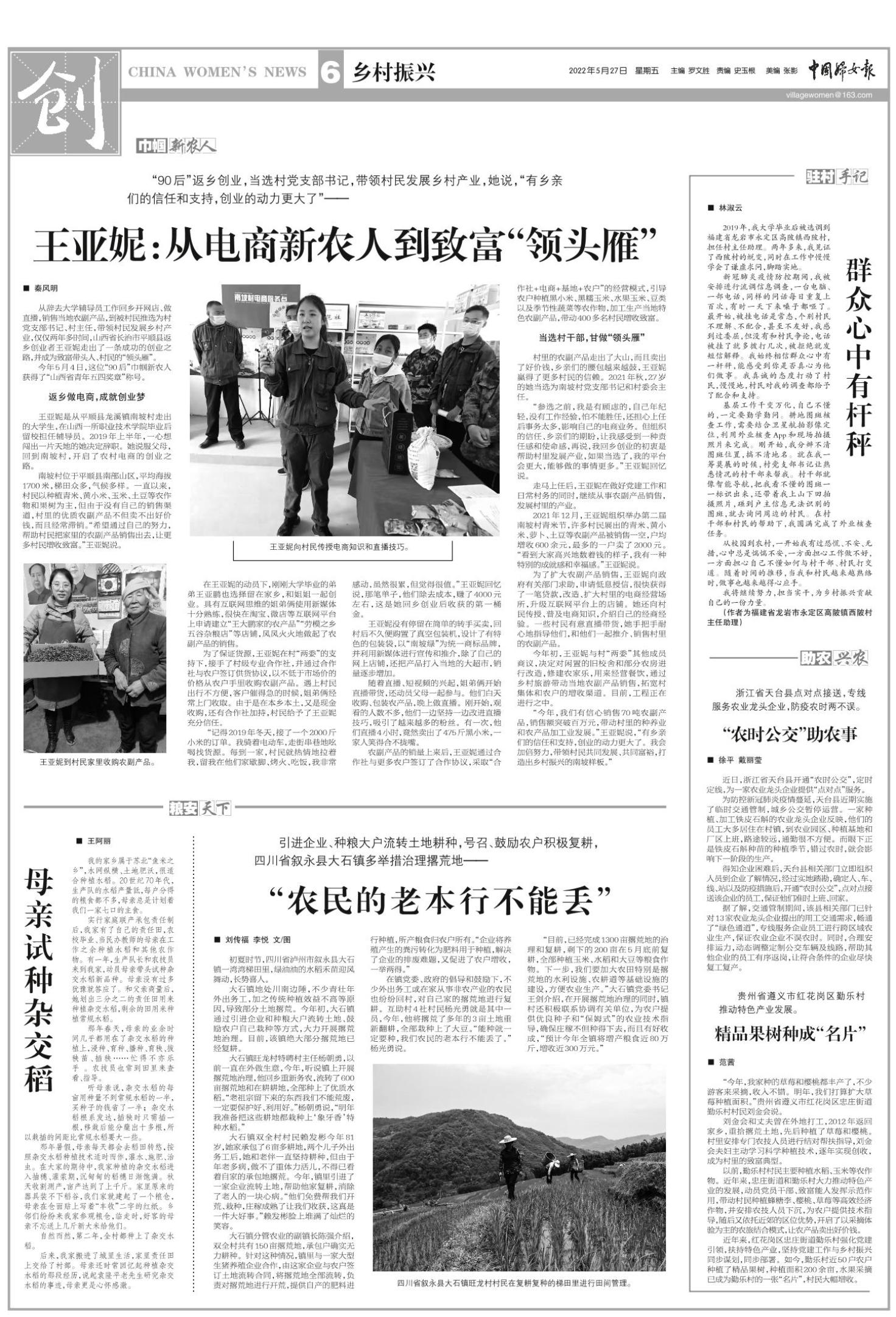 “参选之前,我是有顾虑的,自己年纪轻,没有工作经验,怕不能胜任,还担心上任后事务太多,影响自己的电商业务。但组织的信任、乡亲们的期盼,让我感受到一种责任感和使命感,再说,我回乡创业的初衷是帮助村里发展产业,如果当选了,我的平台会更大,能够做的事情更多。”王亚妮回忆说。