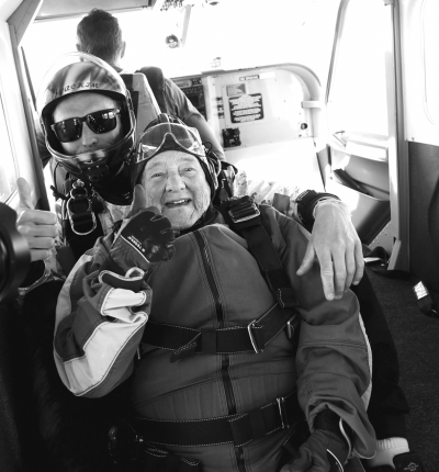 29日,103岁瑞典老人鲁特·拉松与一名跳伞员双人高空跳伞成功,刷新这种跳伞方式的高龄纪录。比先前纪录保持者年长78天。新华社/法新