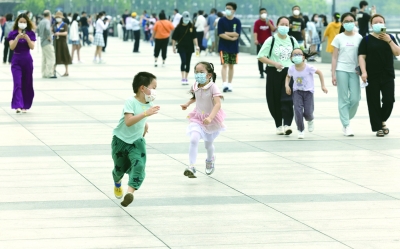 6月1日,孩子们在外滩观景平台玩耍。    根据上海市持续巩固疫情防控成果、有序恢复正常生产生活秩序总体方案的安排,6月1日起,上海在严守不出现规模性反弹底线、确保风险可控的前提下,全面实施疫情防控常态化管理,全面恢复全市正常生产生活秩序。 新华社记者金立旺/摄