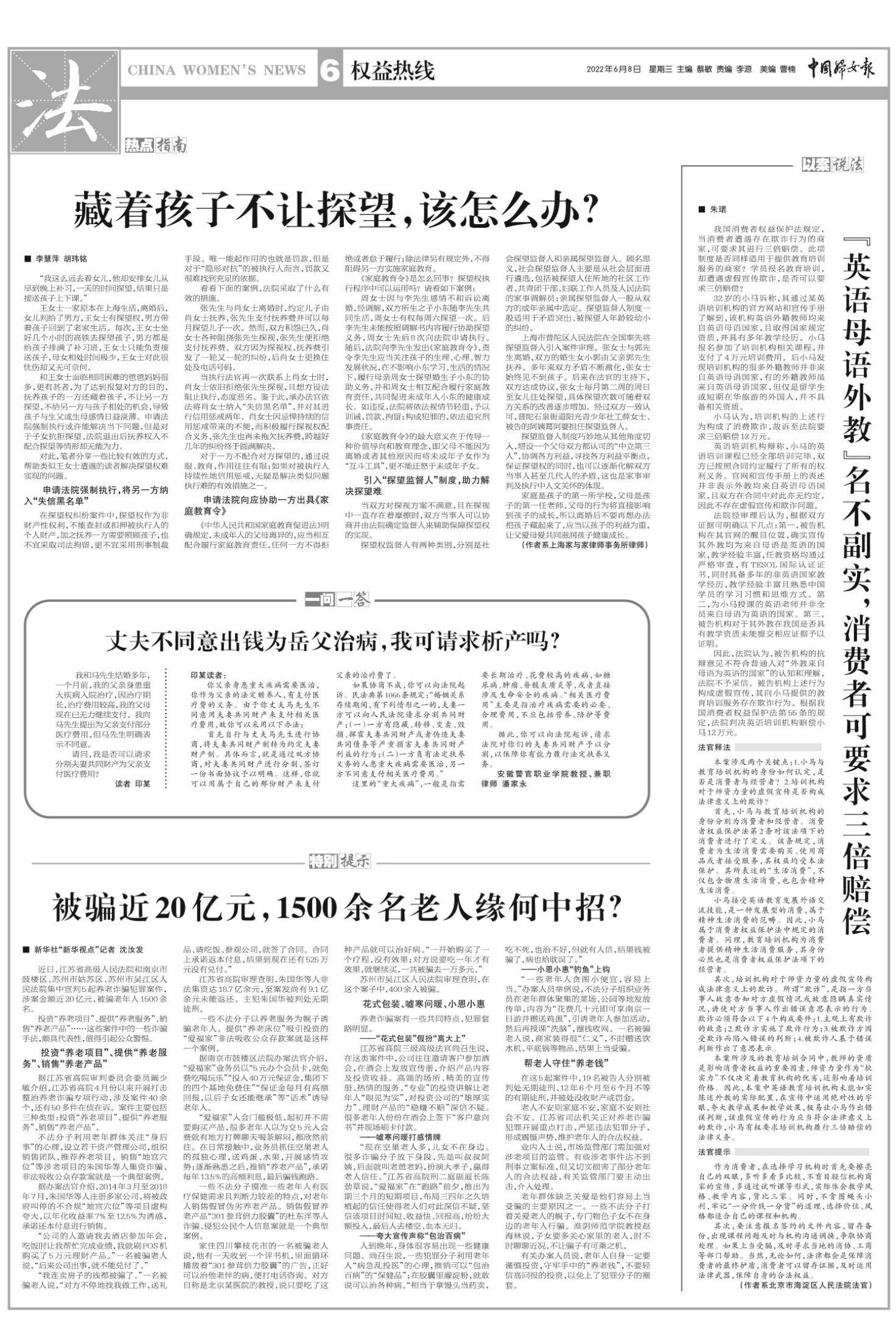 “我这么远去看女儿,他却安排女儿从早到晚上补习,一天的时间探望,结果只是接送孩子上下课。”
