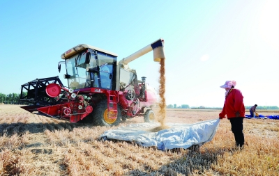 6月7日,在山东省滕州市鲍沟镇宋庄村,农民趁着晴好天气收获小麦。三夏时节,各地进入夏季农忙期,农民抢抓农时开展农事劳作,田间地头一派忙碌景象。