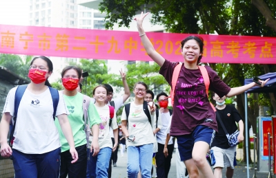 6月8日,在南宁市第二十九中学,考生结束考试后走出考点。当日,全国部分地区2022年高考结束。新华社记者 陆波岸/摄