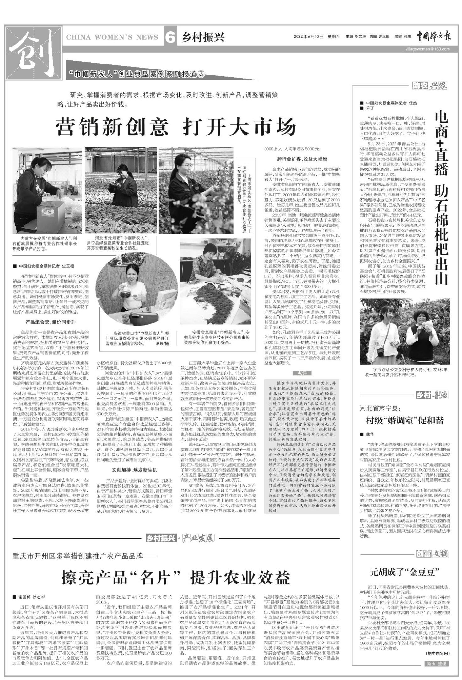 在“巾帼新农人”群体当中,有不少是营销高手、销售达人。她们有着敏锐的市场观察力,善于研究、掌握消费者的需求;她们观念新,思维活跃,敢于打破传统销售模式,创意频出。她们根据市场变化,及时改进、创新产品,调整营销策略,让昔日一成不变的农产品销售玩出了新组合、新创意,实现了让好产品卖得出、卖出好价钱的跨越。