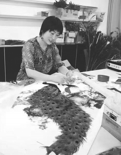 受此启发,关丽有了更大的计划:以孔雀羽毛为原料,加工手工艺品。她请来专业设计人员,陆续研发了孔雀羽毛发簪、头饰、耳坠等多种手工艺品。短短几年,公司原创产品达到了10个系列500多款,统一以“孔雀公主”的品牌,在国内许多旅游景区销售甚至出口国外,少的卖几十元一件,多的卖到了1000元。