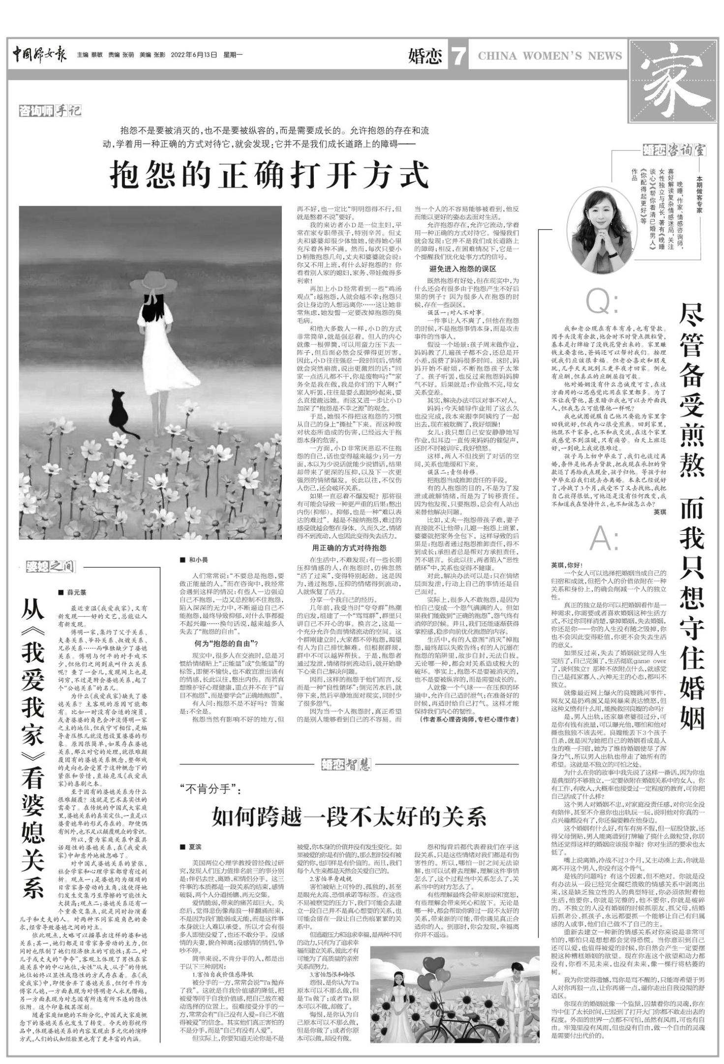 《中国妇女报》(电子版)的一切内容(包括但不限于文字、图片、PDF、图表、标志、标识、商标、版面设计、专栏目录与名称、内容分类标准以及为读者提供的任何信息)仅供中国妇女报读者阅读、学习研究使用,未经中国妇女报及/或相关权利人书面授权,任何单位及个人不得将《中国妇女报》(电子版)所登载、发布的内容用于商业性目的,包括但不限于转载、复制、发行、制作光盘、数据库、触摸展示等行为方式,或将之在非本站所属的服务器上作镜像。否则,中国妇女报将采取包括但不限于网上公示、向有关部门举报、诉讼等一切合法手段,追究侵权者的法律责任。