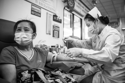 6月13日,海南省琼海市民在献血点献血。    6月14日世界献血者日即将到来,各地爱心人士积极献血。    新华社发(蒙钟德/摄)