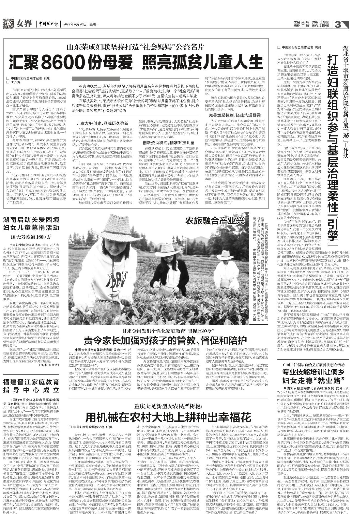 《中国妇女报》(电子版)的一切内容(包括但不限于文字、图片、PDF、图表、标志、标识、商标、版面设计、专栏目录与名称、内容分类标准以及为读者提供的任何信息)仅供中国妇女报读者阅读、学习研究使用,未经中国妇女报及/或相关权利人书面授权,任何单位及个人不得将《中国妇女报》(电子版)所登载、发布的内容用于商业性目的,包括但不限于转载、复制、发行、制作光盘、数据库、触摸展示等行为方式,或将之在非本站所属的服务器上作镜像。否则,中国妇女报将采取包括但不限于网上公示、向有关部门举报、诉讼等一切合法手段,追究侵权者的法律责任。