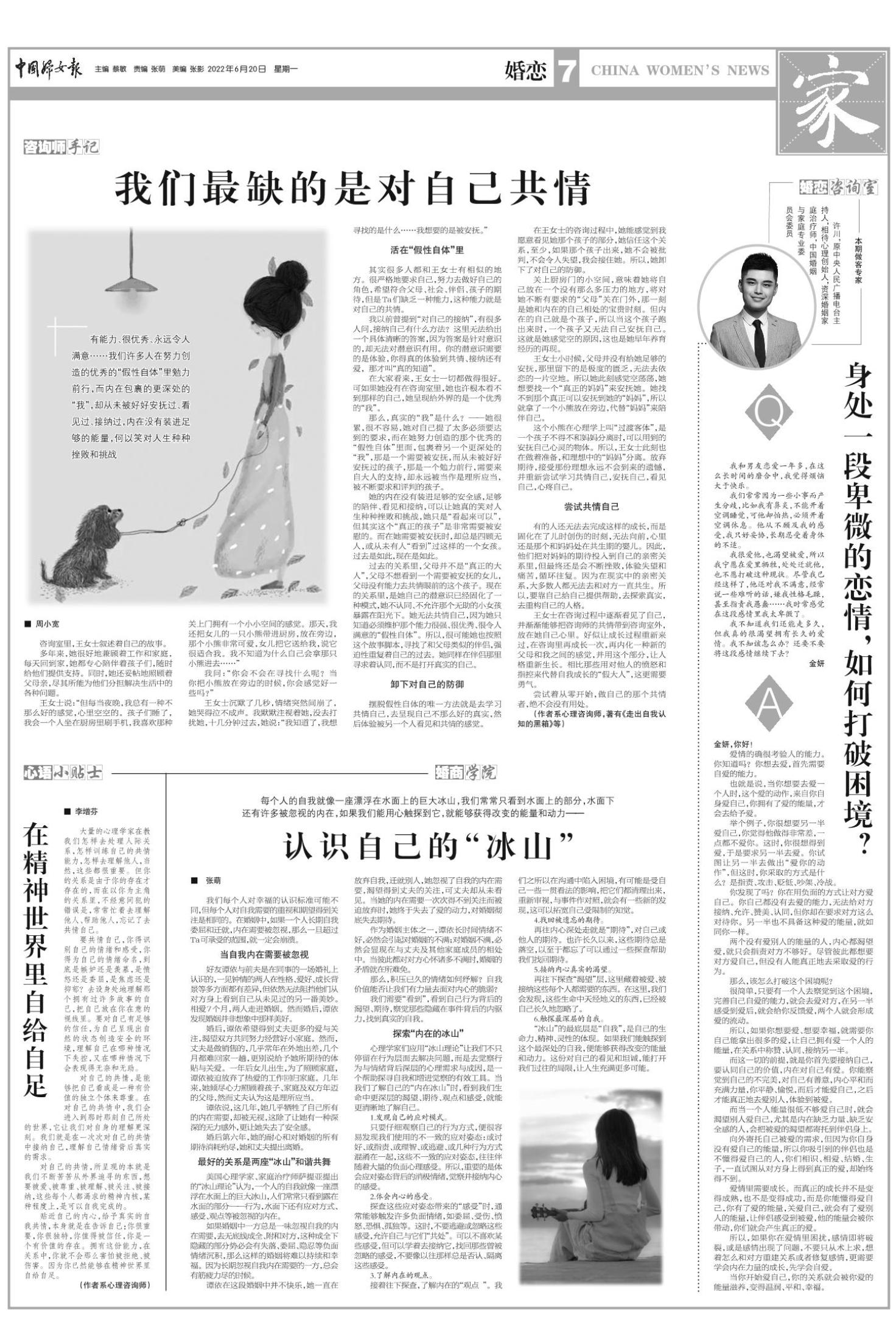 《中国妇女报》(电子版)的一切内容(包括但不限于文字、图片、PDF、图表、标志、标识、商标、版面设计、专栏目录与名称、内容分类标准以及为读者提供的任何信息)仅供中国妇女报读者阅读、学习研究使用,未经中国妇女报及/或相关权利人书面授权,任何单位及个人不得将《中国妇女报》(电子版)所登载、发布的内容用于商业性目的,包括但不限于转载、复制、发行、制作光盘、数据库、触摸展示等行为方式,或将之在非本站所属的服务器上作镜像。否则,中国妇女报将采取包括但不限于网上公示、向有关部门举报、诉讼等一切合法手段,追究侵权者的法律责任。