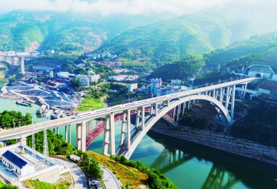 6月20日,一辆郑渝高铁列车行驶在重庆奉节梅溪河双线特大桥上(无人机照片)。 当日,郑州至重庆高速铁路襄阳东至万州北段开通,郑渝高铁实现全线贯通运营。 郑渝高铁北起河南省郑州市,南至重庆市,途经河南、湖北、重庆3省市,全长1068公里,是我国“八纵八横”高速铁路主通道的重要组成部分。 新华社发(舒鹏/摄)