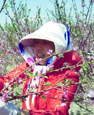 1990年,程兴琼和丈夫从四川来到新疆生产建设兵团104团三连承包管理大田、种植桃,她有着川妹子吃苦耐劳的闯劲、乐于助人的热情。2007年,师、团党委在104团一连打造“万亩桃园”观光旅游基地,作为种植骨干,程兴琼和丈夫响应团党委号召来到一连种植桃树。面对贫瘠的自然条件,夫妻俩决定先试种10亩,一年后她又将剩下的10亩也全部种上了桃树。灌水施肥、打药修剪、除草治病、埋土越冬,样样她都亲自来。功夫不负有心人,20亩桃树成活率达到95%以上。她铆足了劲将桃园逐步打造成了连、团、师级示范园、精品园,年纯收入均在40万元左右。